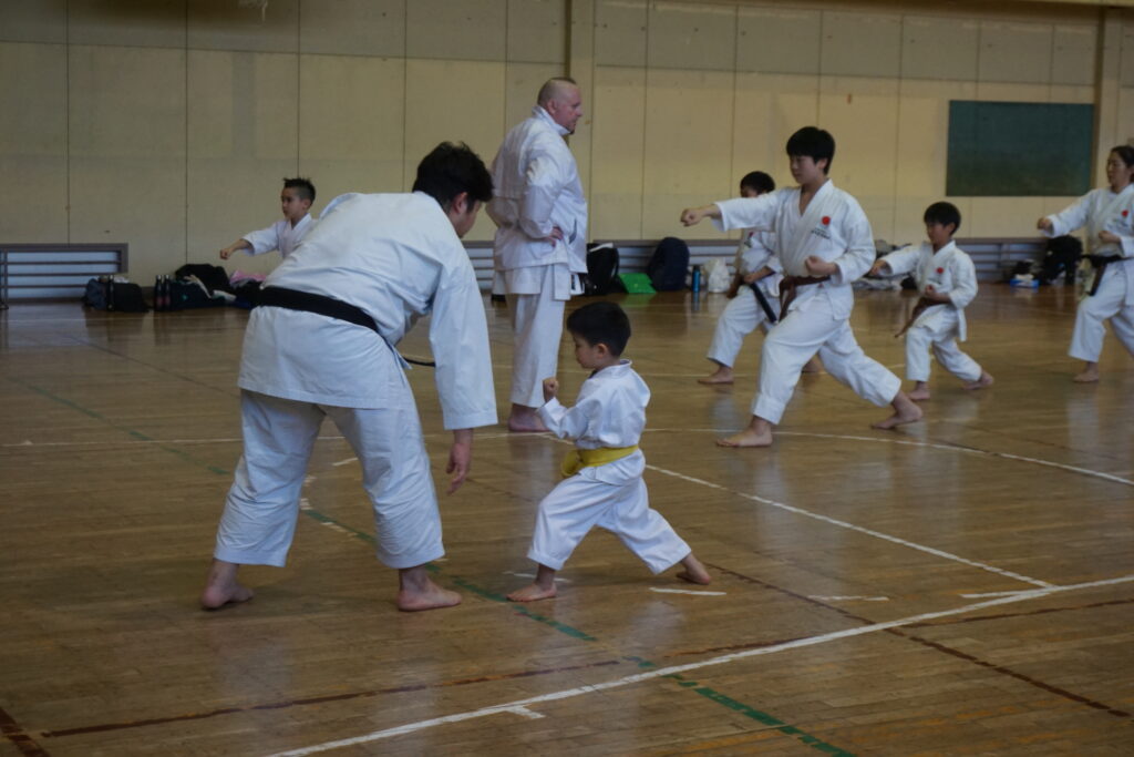 (現役選手でもある上田師範が基本・形・組手それぞれの技を指導。)